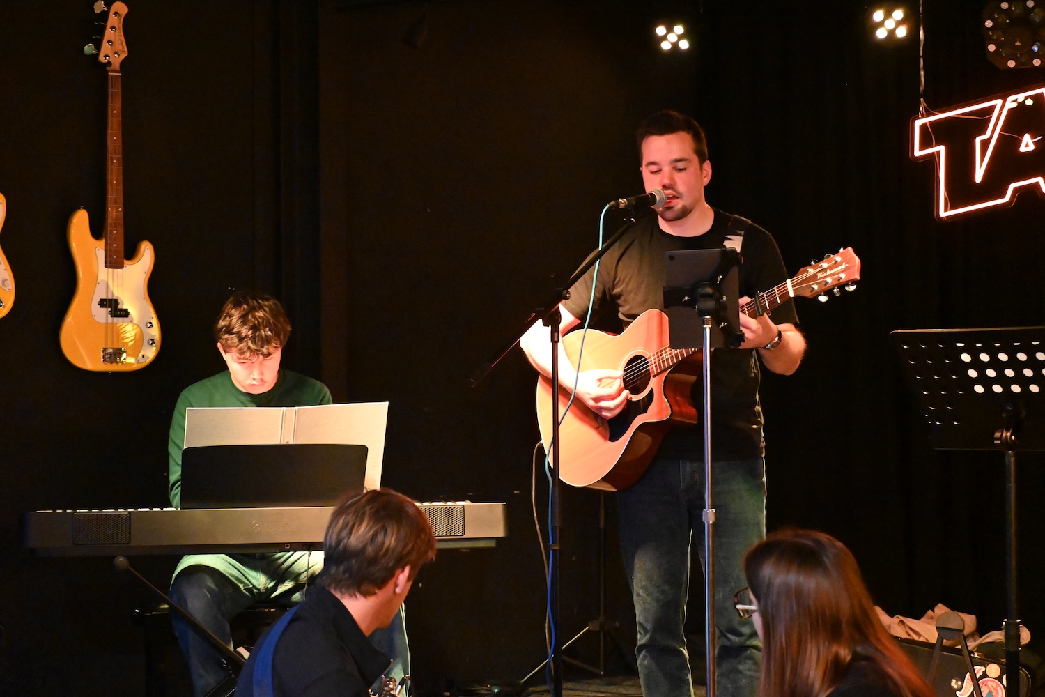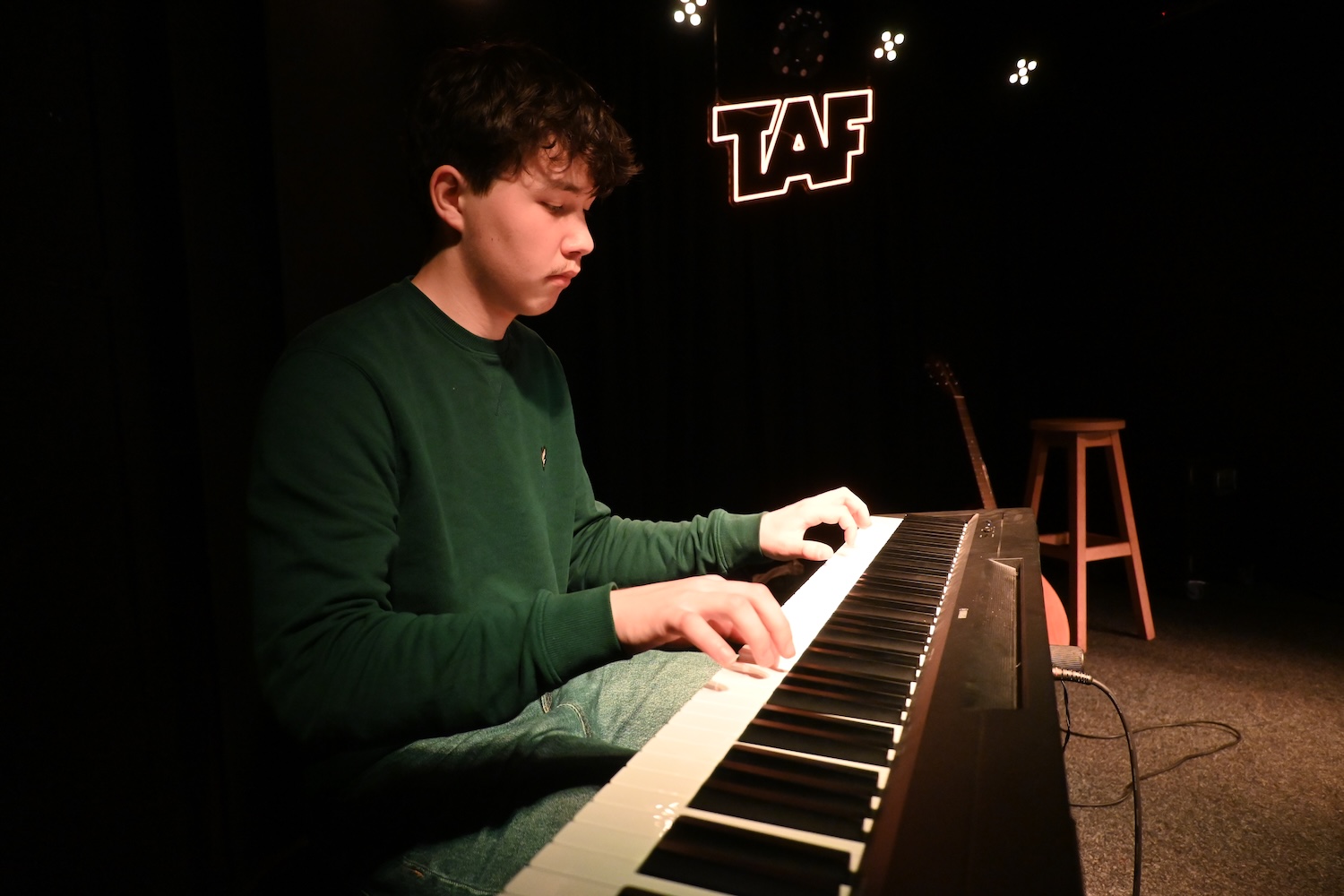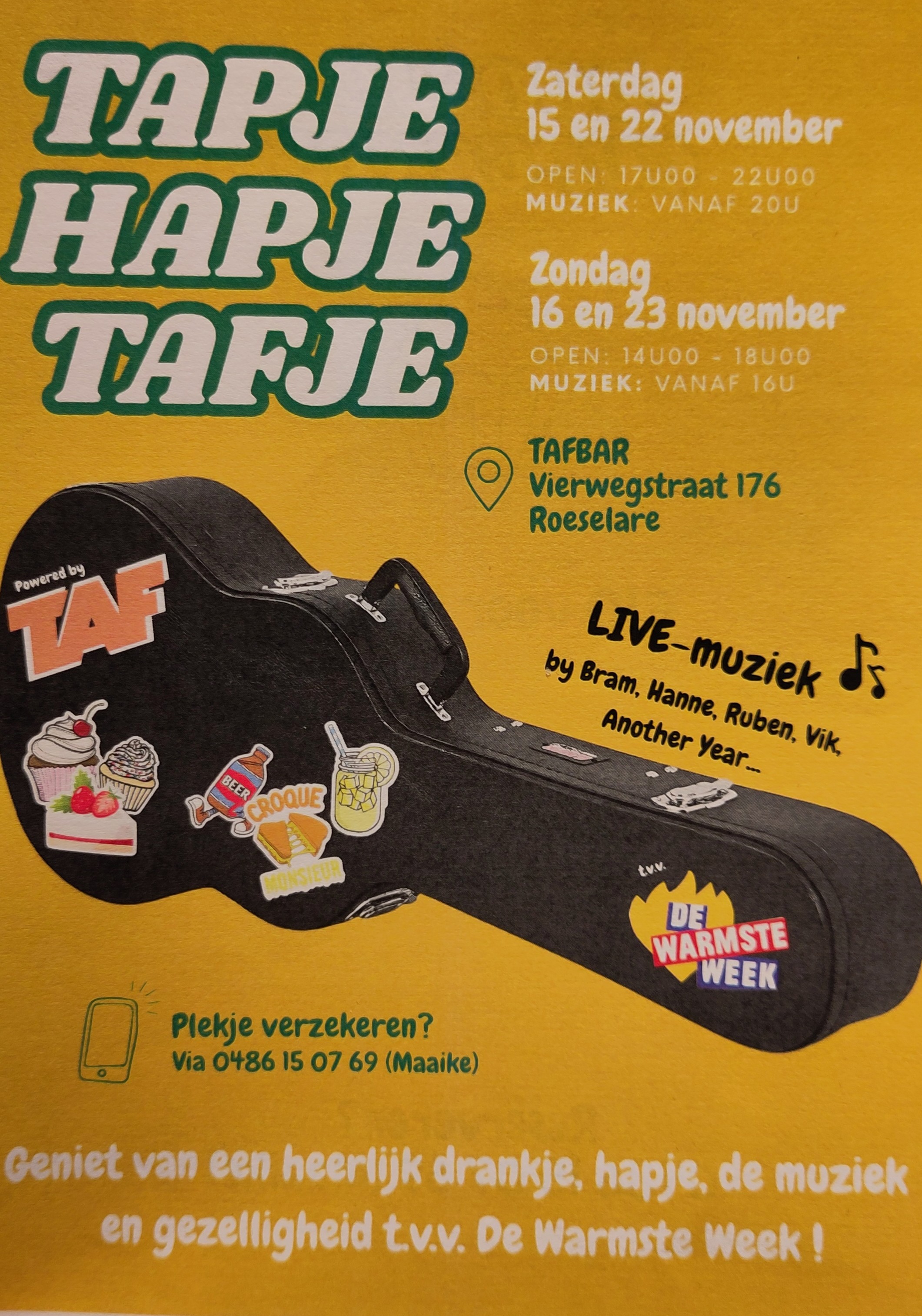Ten voordele van de Warmste Week, trad ik samen met Bram en Hanne op in TAF. Op zaterdagavond en zondagnamiddag brachten we twee maal een half uur een mix van solo- en zangnummers. Een ideale combinatie met de taartjes van Maaike in het gezellige zaaltje van The Art Factory in Roeselare!